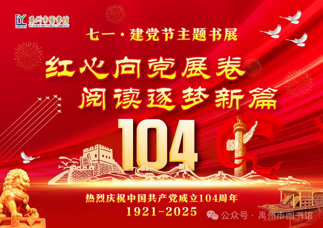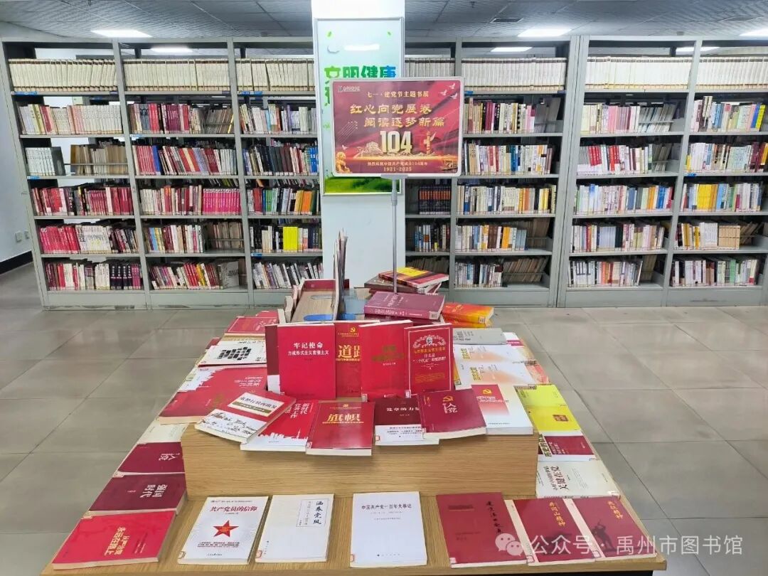 峥嵘岁月忆初心,砥砺奋进正当时! 为热烈庆祝中国共产党成立104周年,弘扬伟大建党精神,厚植爱党爱国情怀,禹州市图书馆特别策划推出“红心向党展卷,阅读逐梦新篇”主题书展,诚邀全市读者朋友一同在书香中汲取奋进力量!