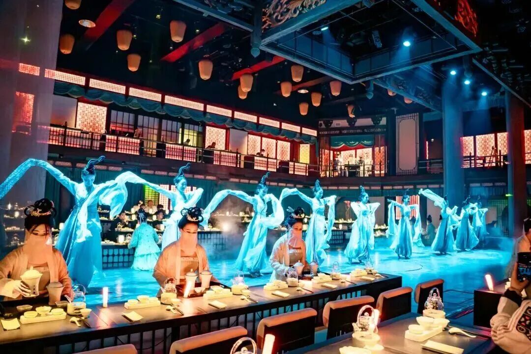 《清明上河·宋宴》沉浸式餐秀,以“活态宋式风雅”为主题的全景沉浸式宴演,通过“宴席+演艺+科技”的创新形式,让游客化身北宋汴京雅士,跟着宋代名人的脚步风雅入宴。八幕十场,演绎大宋生活美学,从序章《菊盏流光》的茶香菊影,到终章《东京梦华》的市井烟火,让游客充分感受“食不厌精 脍不厌细”的宋式饮食哲学。