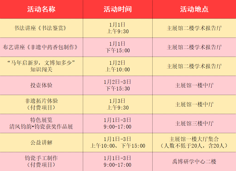 时间:1月1日至3日,每日上午10:00· 1月1日(周四):坪山钧窑(联系电话:15136890222)