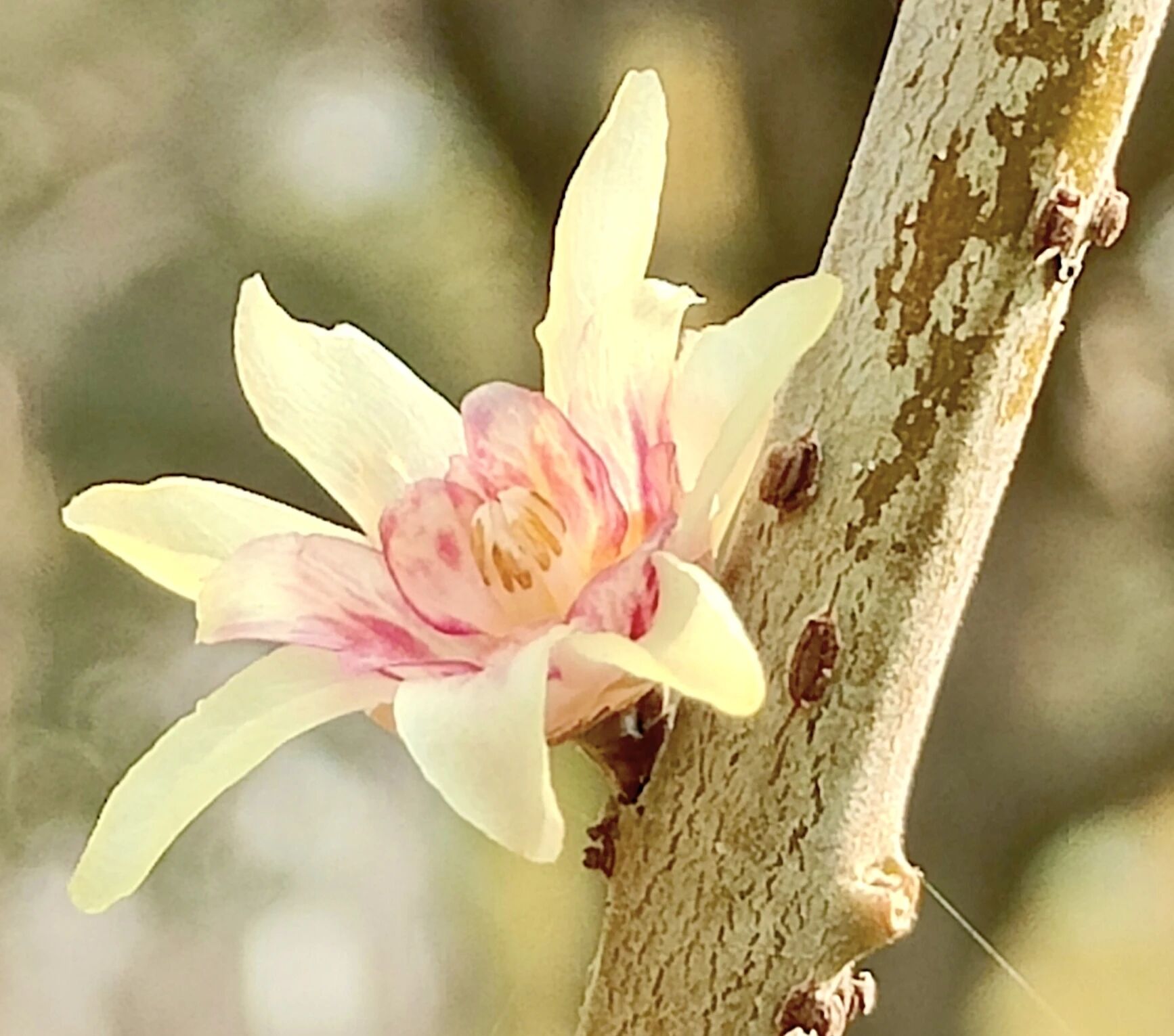 一踏入植物园,冷风里先裹着一缕暗香 —— 是蜡梅开了! 枝桠间鹅黄的花瓣像被阳光揉碎,像被裹成一盏盏嫩黄小灯笼。有的半绽着,露出嫩黄的蕊;有的裹着褐色花萼,像藏了冬天的秘密,风一吹,蜡梅的香扑鼻。 沿步道走就能撞见一丛丛蜡梅斜倚着。凑近闻,是清冽又绵柔的香,像把冬天的冷意都酿成了甜。