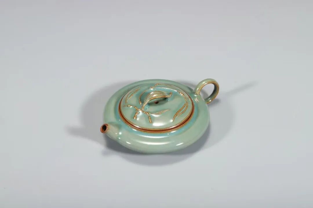 作品釉面流淌,如江南烟雨般朦胧氤氲,深浅交织;釉色隐隐透出蓝绿基调,是千年东方美学中“青”的深邃表达中融合了自然、哲学与人文情怀的高级雅致。