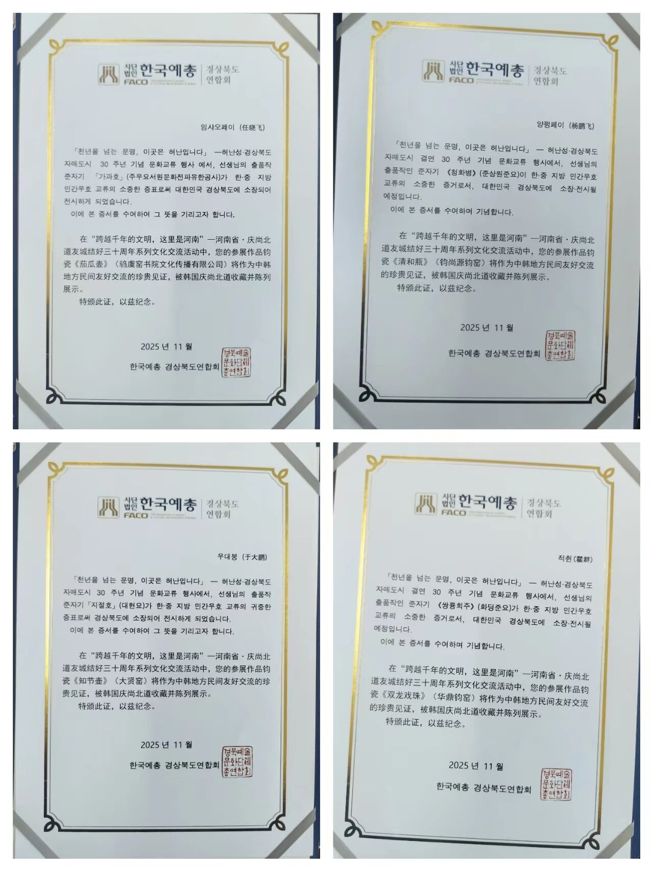 近日,由河南省人民对外友好协会与韩国庆尚北道联合举办的“跨越千年的文明,这里是河南”一一河南省·庆尚北道友城结好三十周年文化交流活动在庆尚北道安东市圆满落幕。
