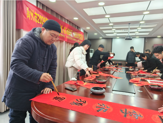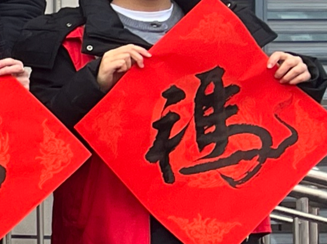 这边墨香未散,那边服务已延伸。马可上午书写了20多副春联后,又立即带领会员匆匆赶往下一个站点——火龙镇西王楼村。那里,同样有翘首以盼的乡亲在等待。活动现场,文艺志愿服务队队员忙着铺纸、晾联、分发,秩序井然。据统计,仅实践活动启动仪式当天上午,就送出了春联300余副、“福”字200多张。一片片鲜艳的中国红,映着一张张灿烂的笑脸,成为冬日里最温暖的风景。